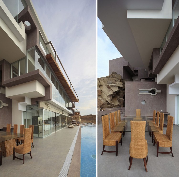 別墅設計,維羅妮卡海灘別墅(Veronica Beach House)秘魯一向以其美食和音樂而聞名,我們希望通過本次的設計可以使其建筑同樣受到人們的關注,所以我們決定拋開理性的設計思路,而采用更加奔放自由的設計理念,并將當?shù)匚幕v史等元素融入其中,而這也是我們在秘魯設計項目一貫遵循的原則。