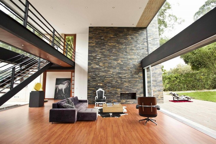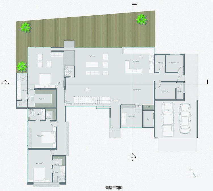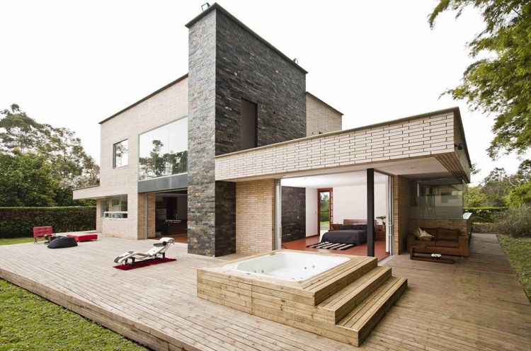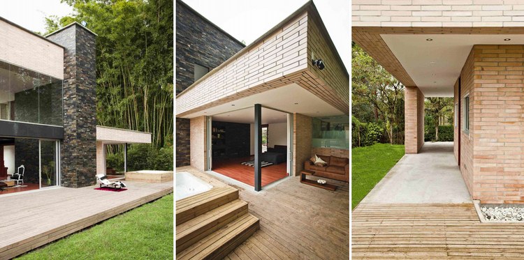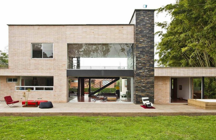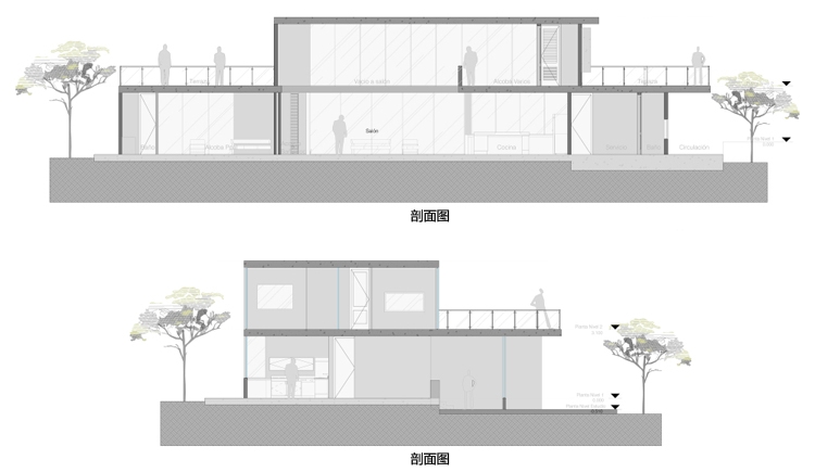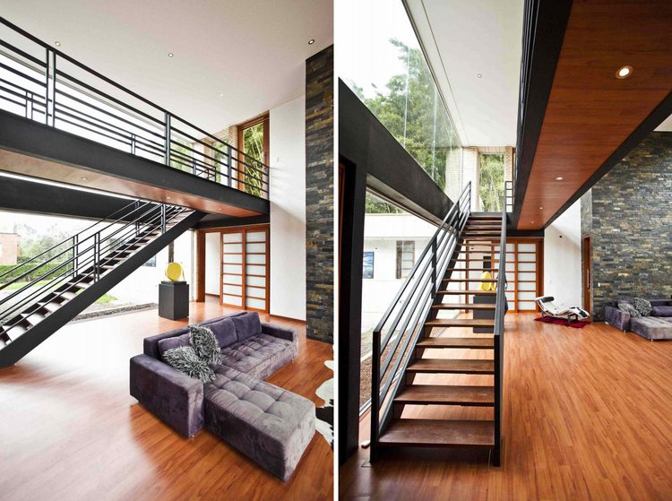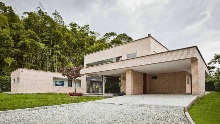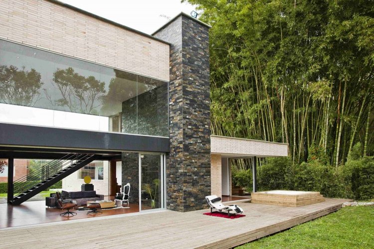 別墅設(shè)計,Olaya別墅(Olaya House)Olaya別墅位于哥倫比亞Medellin市中心大概45分鐘的車程,房屋的首層采用統(tǒng)一樣式的磚塊鋪筑而成,但各功能分區(qū)布局規(guī)整、明確,包括服務(wù)區(qū)、活動區(qū)和私人區(qū)。服務(wù)區(qū)域包括車庫、傭人房、洗衣房和貯藏室?;顒訁^(qū)內(nèi)設(shè)有一個巨大的廚房并與用餐區(qū)和主客廳相對,通過一道甲板式通道便可來到院落。私人區(qū)有三個我是,每一個房間都帶有獨立衛(wèi)生間、浴室和更衣室。活動區(qū)與私人區(qū)被一道巨大的黑色磚墻所隔開,不論從室內(nèi)還是室外都可以看到這道墻,同時墻體也是房屋主結(jié)構(gòu)之一,墻體內(nèi)部設(shè)有一個公共于是和兩個獨立的煙囪,分別服務(wù)于主臥和主客廳的通風。經(jīng)過位于一層服務(wù)區(qū)的風格化樓梯便可以來到二層:這里簡單舒適,分為兩個寬敞的區(qū)域,一個是書房一個是主臥,另外還設(shè)有兩個巨大的露臺陽臺,可以從這里欣賞外面的風景。值得一提的是,露臺與房屋由一座小橋連接。