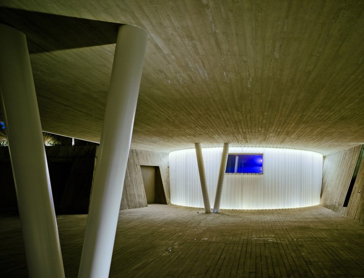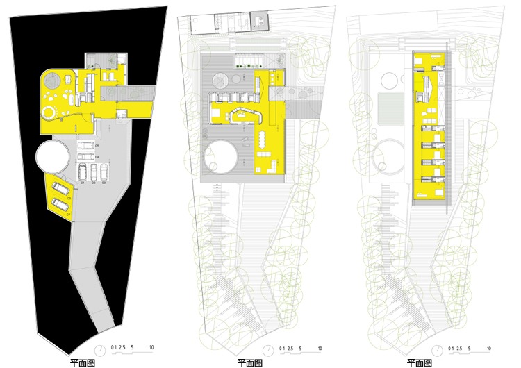 1.舒適性體驗 地下室內部映照著一定的自然光可以滿足休閑娛樂所用。趣味從停車庫開始,透過這里的后擋風玻璃窗設計可以看見游泳池;由彩色模壓混凝土鋪筑成的人行道加強了房間與室外區(qū)域的聯(lián)系; 2.居住性體驗 一層包括一個C形區(qū)域并向私人開放向空間敞開。巨大的懸臂頂棚將內外區(qū)域連接起來,家人可以在這里聽音樂、看展覽。