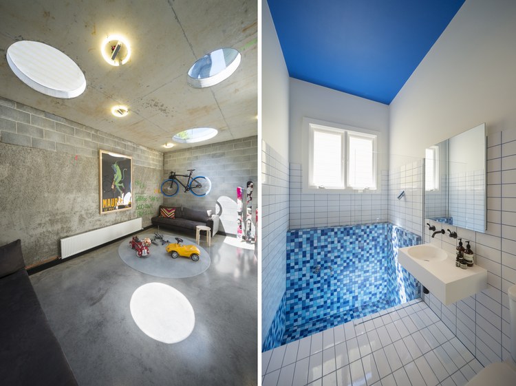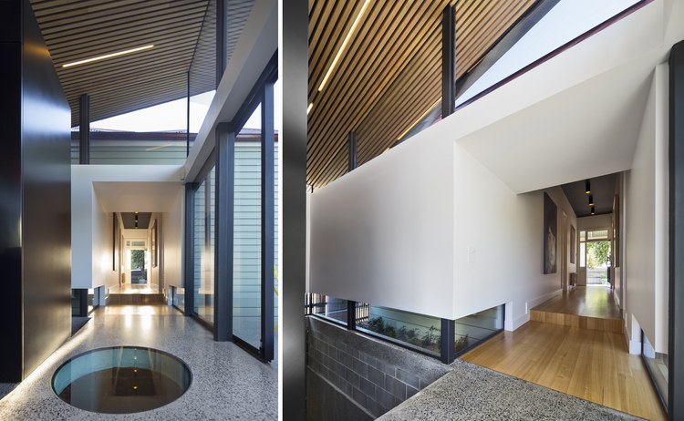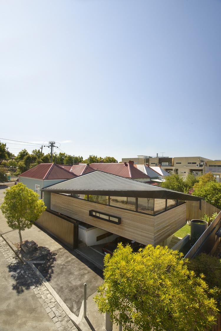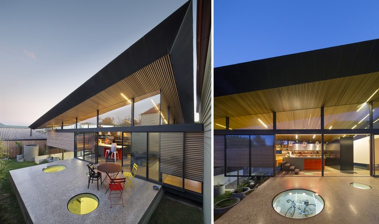 胭脂魚(yú)住宅是對(duì)一座位于澳大利亞墨爾本郊區(qū)獨(dú)立住宅的擴(kuò)展,負(fù)責(zé)設(shè)計(jì)的March Studio工作室以設(shè)計(jì)了一系列精品商店而著稱(chēng)。角度扭曲的屋頂成為住宅的一大特色。住宅的新建部分將原有房子的面積擴(kuò)大了一倍。對(duì)于原有建筑,建筑師只保留了愛(ài)德華時(shí)期的立面,內(nèi)部空間被重新規(guī)劃成只容納臥室和衛(wèi)生間的布局。新建部分為兩層,首層局部埋在地下,容納了車(chē)庫(kù)與活動(dòng)室。有趣的是分割一層與二層的地板上開(kāi)設(shè)了許多圓形的洞,并安裝上鋼化玻璃,使得地下與地上得以連通。