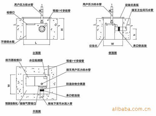 金利潔牌污水提升器則從根本上解決了環(huán)保的難題。該設備除了水泵、水箱、進出水口等必備的材料以外,還配有一個雜物分離器,不要小看這個分離器,解決難題的重點就在這里。污水和雜物進入水箱前,通過進水口的止回閥,先進入雜物分離器中,雜物被隔離在這里,污水通過過濾網(wǎng)、泵腔進入水箱,當水箱中的水位達到一定高度的時候,水泵啟動,水箱中的污水收到壓力先是被排到分離器中,由于水泵排水的壓力大于進水壓力,所以進水止回閥自動關閉,同時出水止回閥自動打開,污水和雜物被一同排出。利用這種反沖器的原理,可以避免雜物在污水提升器中于水泵接觸,也就不存在纏繞和沉積堵塞管道的現(xiàn)象,更不需要清掏,對室內(nèi)環(huán)境造成污染了。