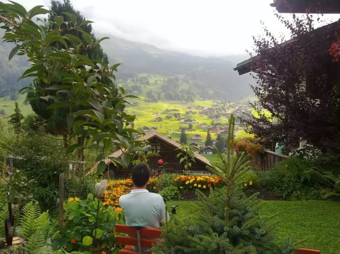 山是瑞士的靈魂,“山若有家,家是瑞士”。格林德瓦爾德在冰川群峰間佇立了多少個(gè)年頭已不可知,如今我們所見的就是它寵辱不驚、怡然自得的氣度。隨便推開一扇窗戶,窗框里就是一幅極美的風(fēng)景畫,怪不得說是“看得見風(fēng)景的房間”。沿山間小徑遠(yuǎn)足,曉風(fēng)微涼,沁人心脾,少女峰上,花開芬芳,鳥語啾啾,不知山路的下個(gè)轉(zhuǎn)角,是否會(huì)有綠野仙蹤的痕跡。